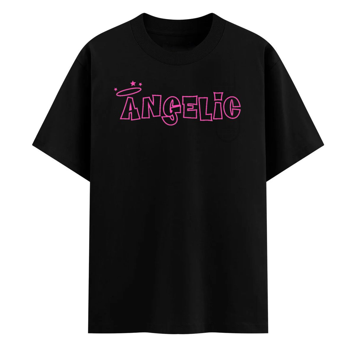 Embrace your sweet side with a little edge in this black oversized graphic hoodie. The bold Bratz inspired text spells out "Angelic" in a vibrant hot pink. A playful design touch comes from the stylized halo and stars floating above the lettering, adding a charming, Y2K-inspired flair.