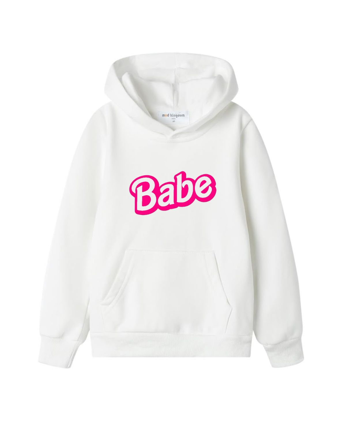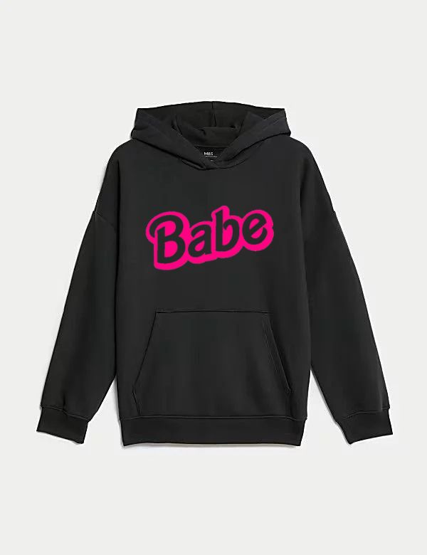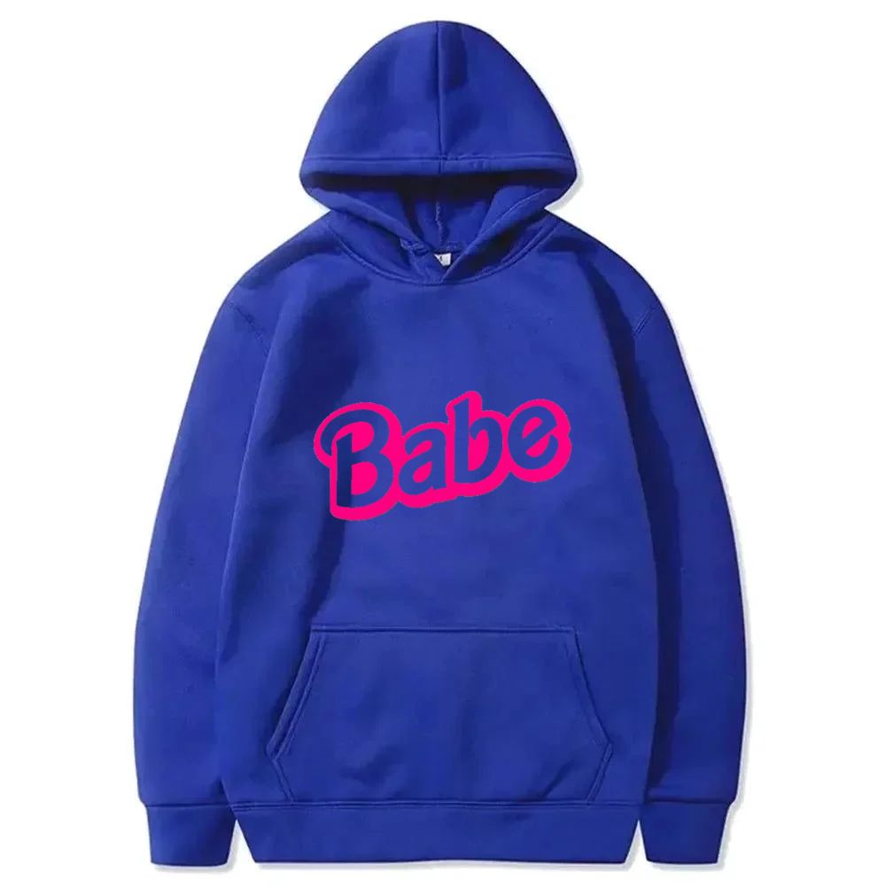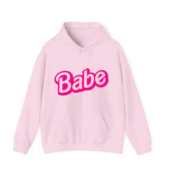 Embrace comfort and style with this bold look featuring a playful, eye-catching graphic. The word "Babe" is printed on the front in a vibrant hot pink, retro-style font, making a fun statement.