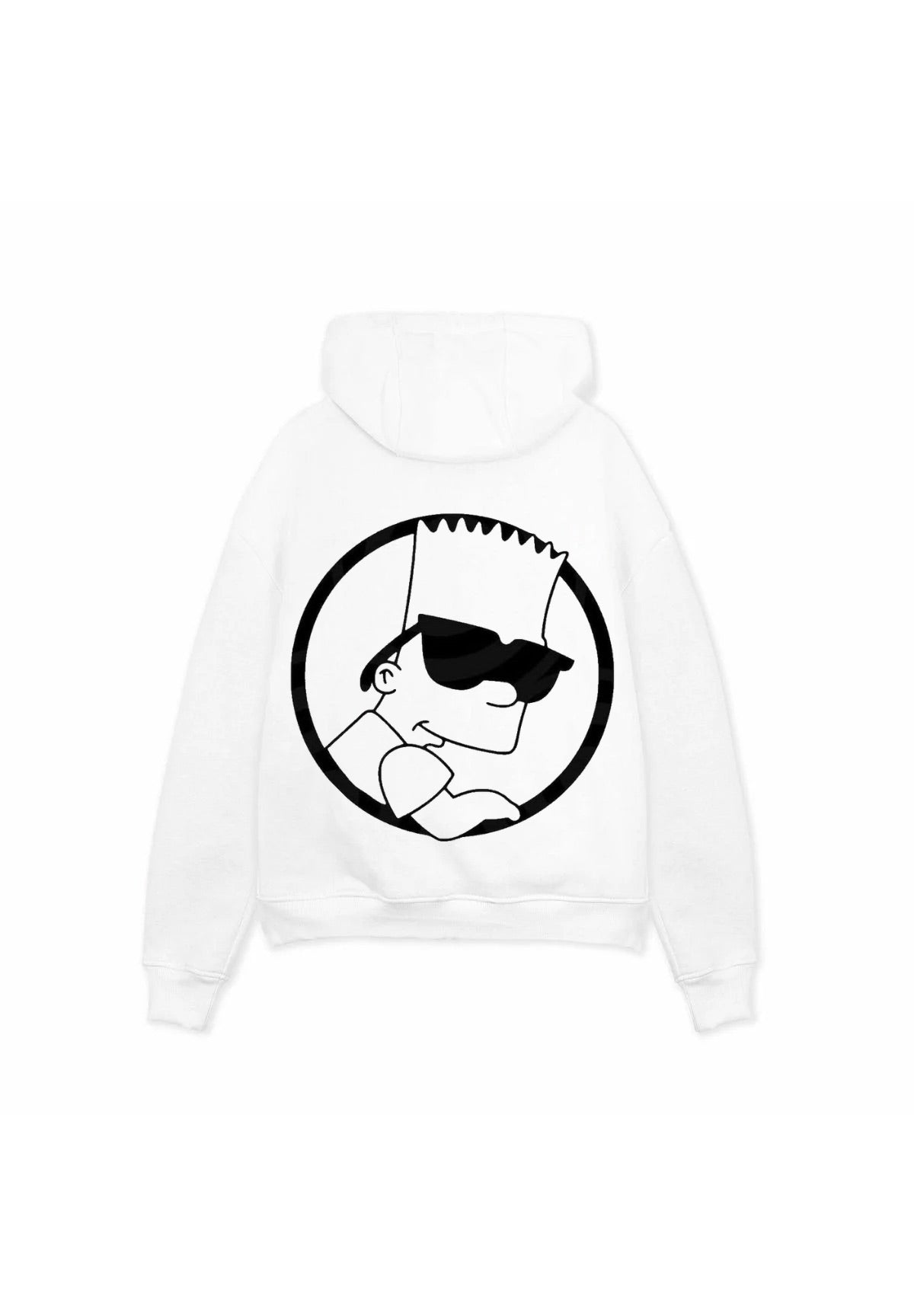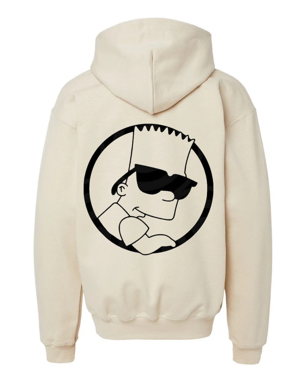 A bold black-outline graphic of a familiar troublemaker in shades, sealed in a crisp circle. This design captures that iconic 90s rebel energy—laid-back, a little smug, and full of attitude.