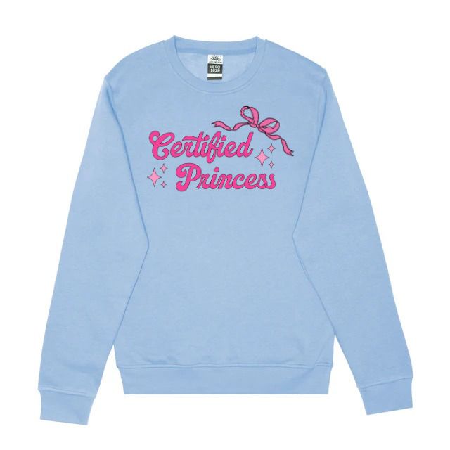 This look is perfect for anyone who wants to embrace their inner royalty! It features the playful phrase "Certified Princess" in a vibrant pink, script-style font. Accented with a charming pink ribbon and sparkling star details, this hoodie adds a touch of whimsy to any casual outfit.