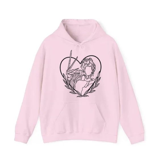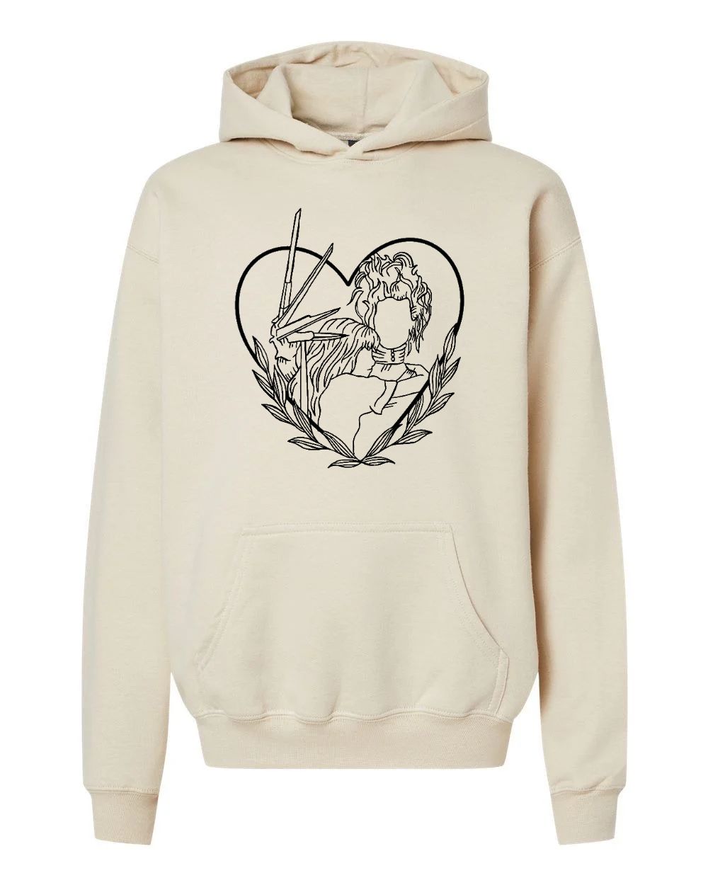 An elegant black-line sketch of Edward Scissorhands inside a heart, surrounded by laurels. Mysterious, romantic, and gothic-chic—this design cuts deep in all the best ways.