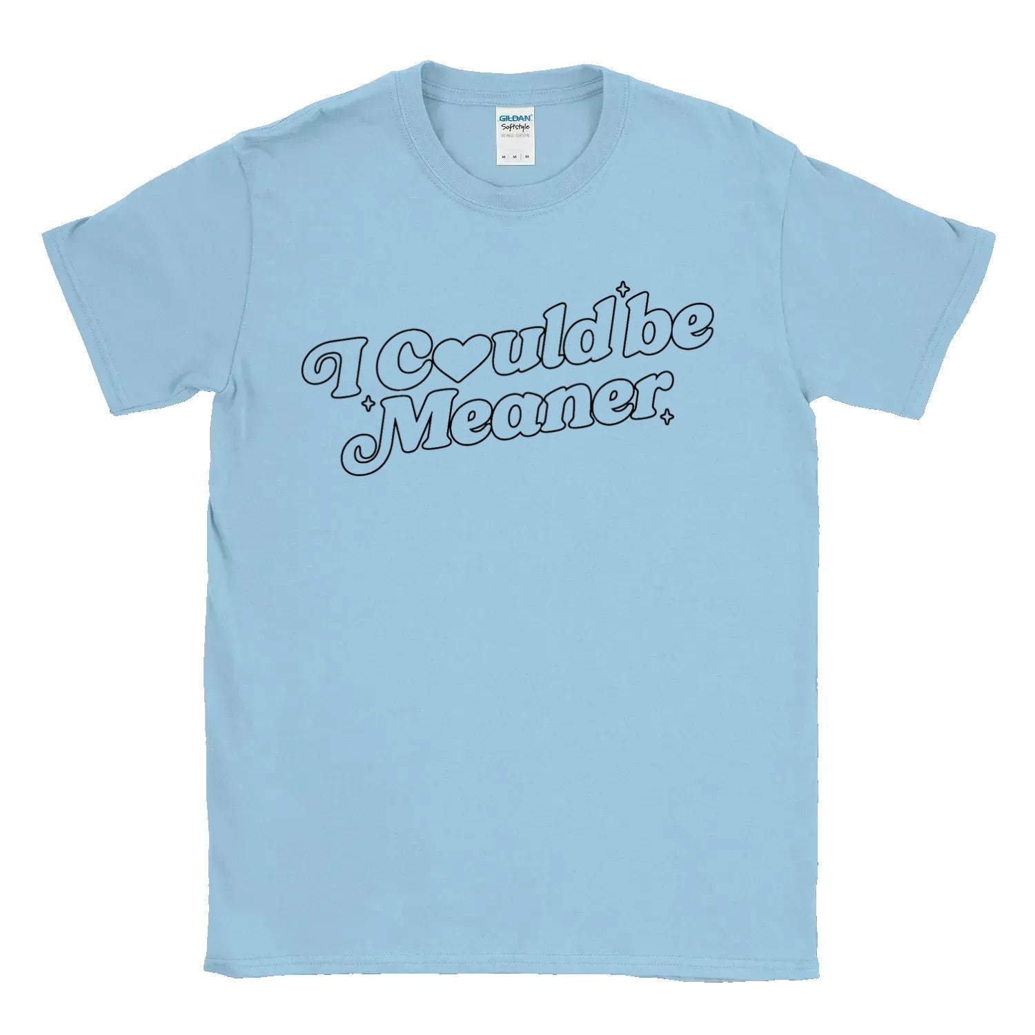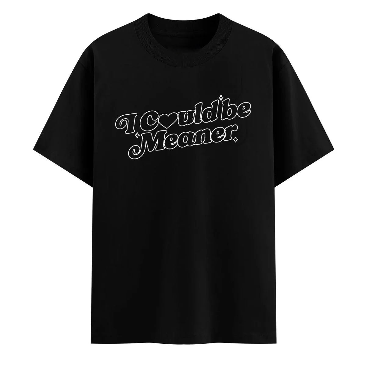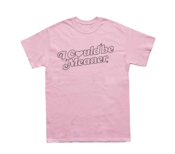 This look is the perfect blend of comfort and attitude. The front is emblazoned with the sassy slogan "I could be Meaner." in a retro-inspired script font. Show the world you've got a little edge while staying completely comfortable. This look is your new go-to for making a statement without saying a word.