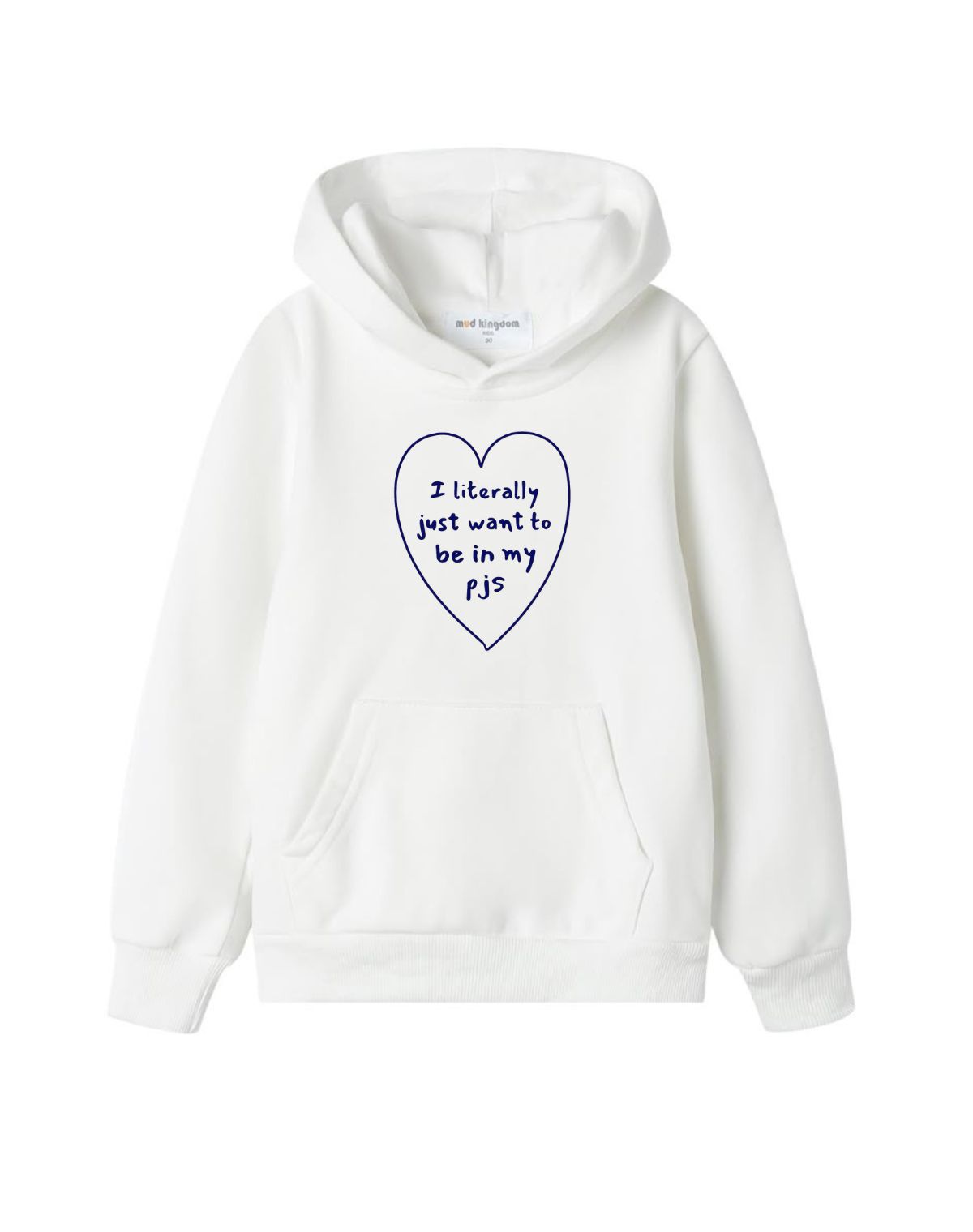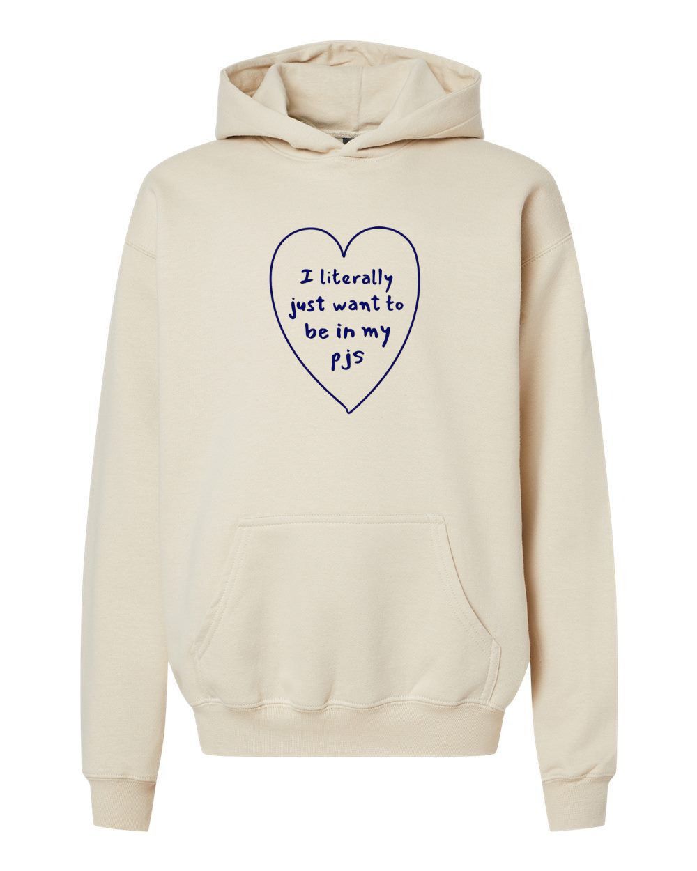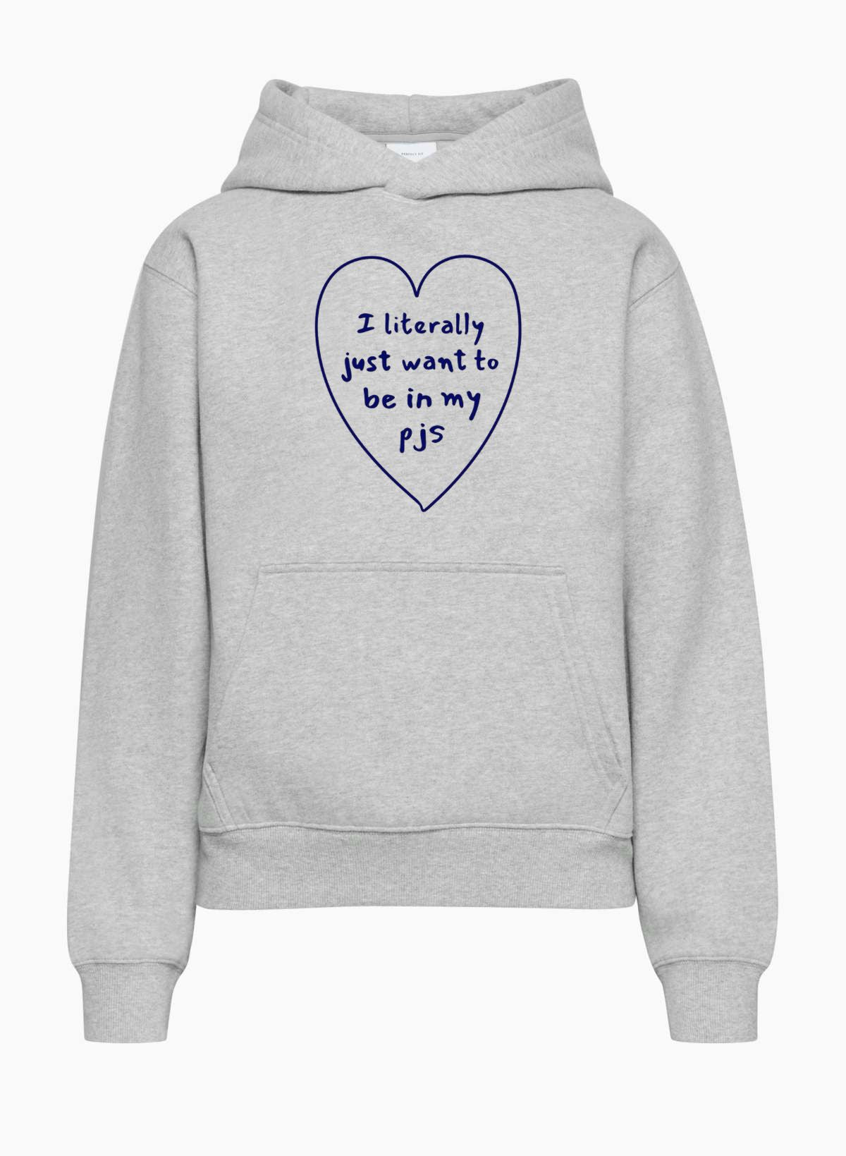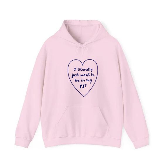 This cozy look is perfect for anyone who values comfort above all else. Featuring a heart-shaped graphic on the front with the relatable slogan, "I literally just want to be in my PJs," this look is a must-have for lounging at home or casual outings.
