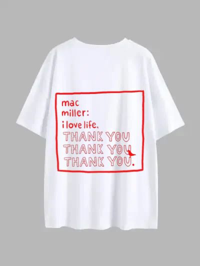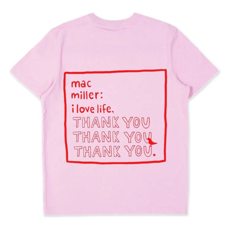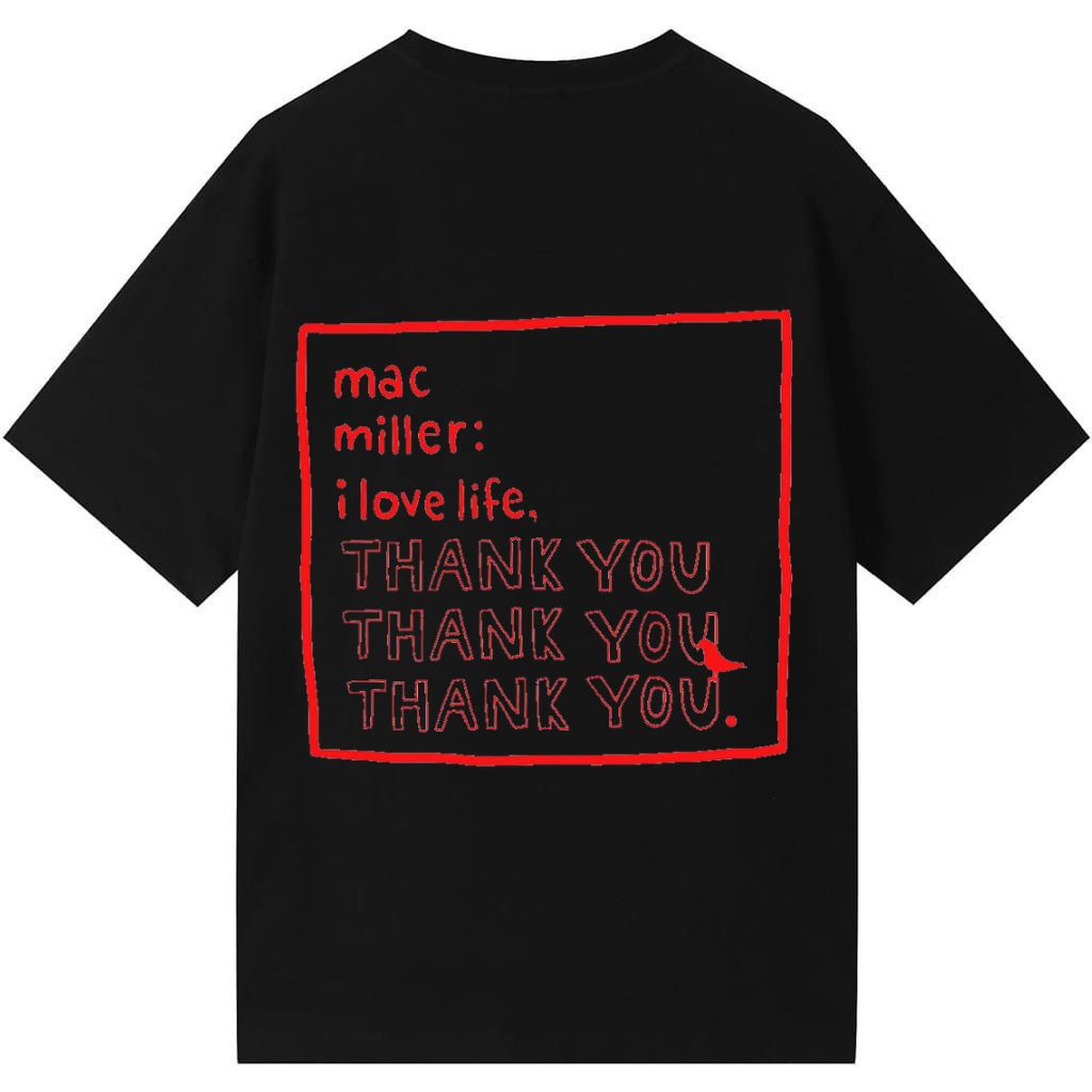 This heartfelt tribute design pays homage to gratitude and life itself. Inspired by Mac Miller's words, it combines a handwritten aesthetic with bold block text, repeating a powerful mantra: Thank you. Thank you. Thank you. Framed in vibrant red, it's a wearable reminder to appreciate every moment.