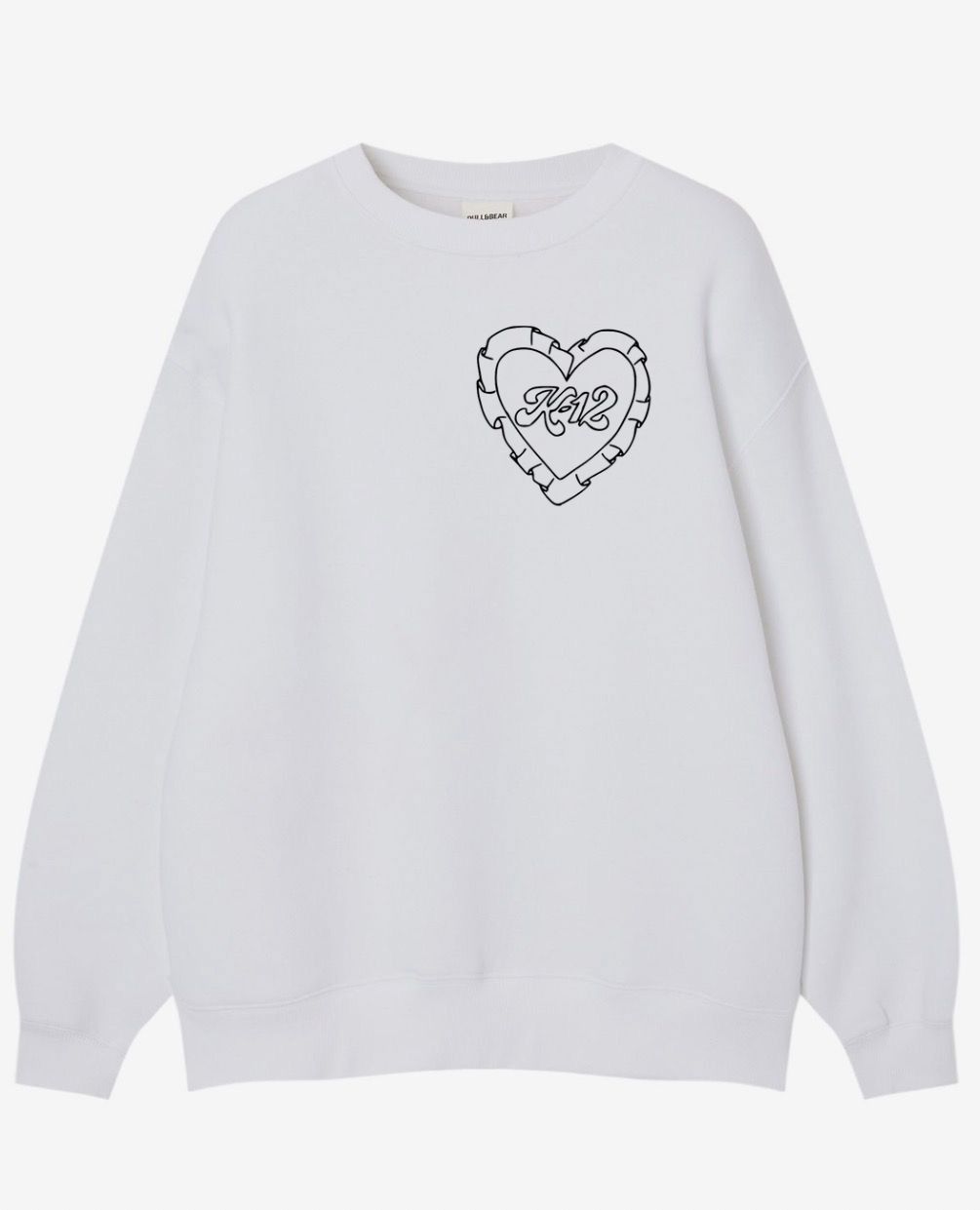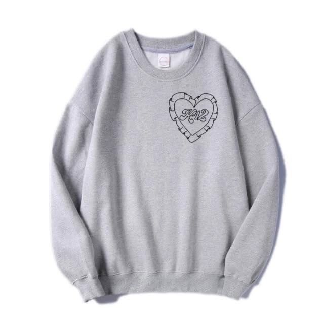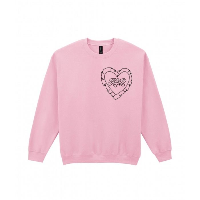 A stitched heart emblem with “K-12” scripted inside—subtle yet iconic. This minimalist front design pays homage to a pastel-hued world where the classroom meets rebellion.