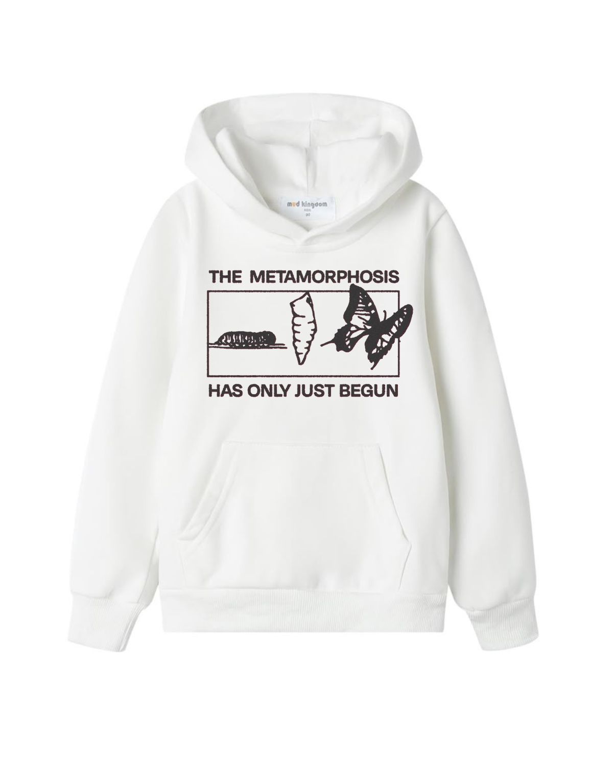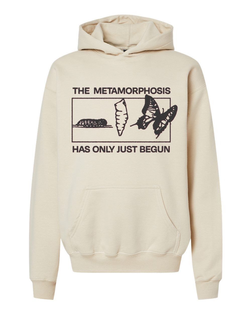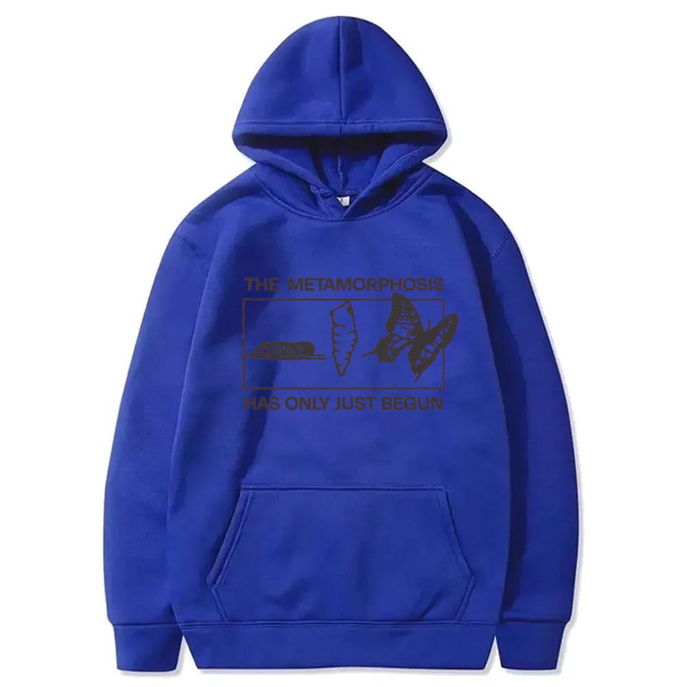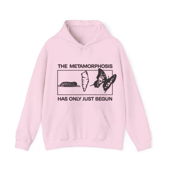 Embrace the journey of transformation with "Metamorphosis". Featuring a striking graphic depicting a caterpillar, chrysalis, and butterfly, this look is a powerful reminder that change is a beautiful beginning. The simple yet profound message, "The Metamorphosis Has Only Just Begun," inspires growth and evolution.