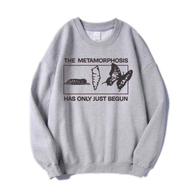 Embrace the journey of transformation with "Metamorphosis". Featuring a striking graphic depicting a caterpillar, chrysalis, and butterfly, this look is a powerful reminder that change is a beautiful beginning. The simple yet profound message, "The Metamorphosis Has Only Just Begun," inspires growth and evolution.