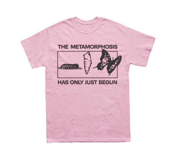 Embrace the journey of transformation with "Metamorphosis". Featuring a striking graphic depicting a caterpillar, chrysalis, and butterfly, this look is a powerful reminder that change is a beautiful beginning. The simple yet profound message, "The Metamorphosis Has Only Just Begun," inspires growth and evolution.
