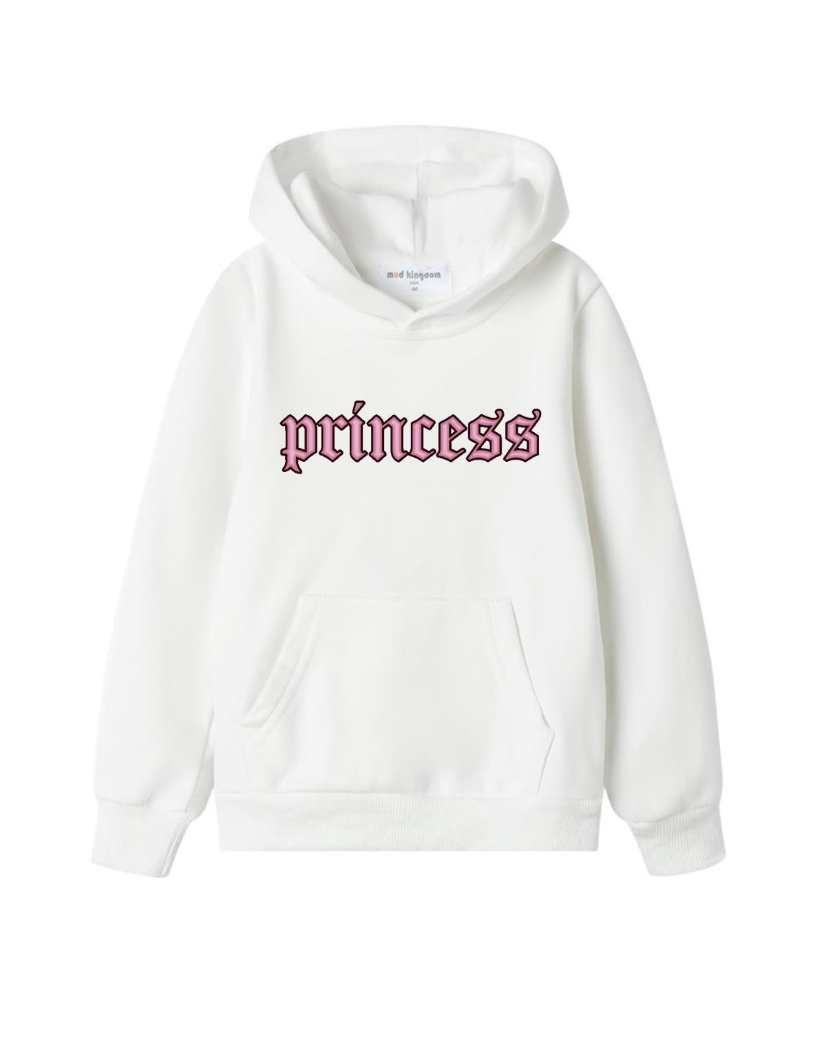 This look features the word "princess" emblazoned across the chest in a stylish gothic font. It's a comfortable and trendy piece that adds a touch of playful charm to any outfit. Perfect for lounging or making a statement, this look is a must-have for anyone who embraces their inner royalty.