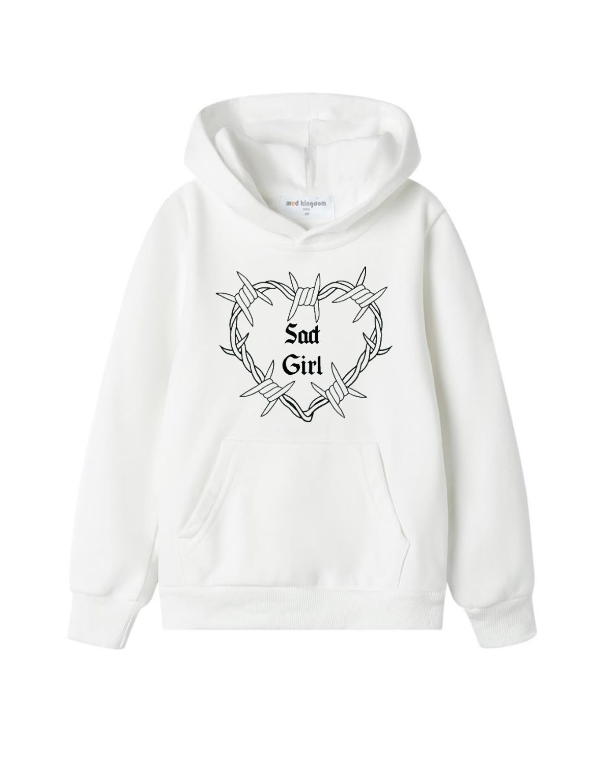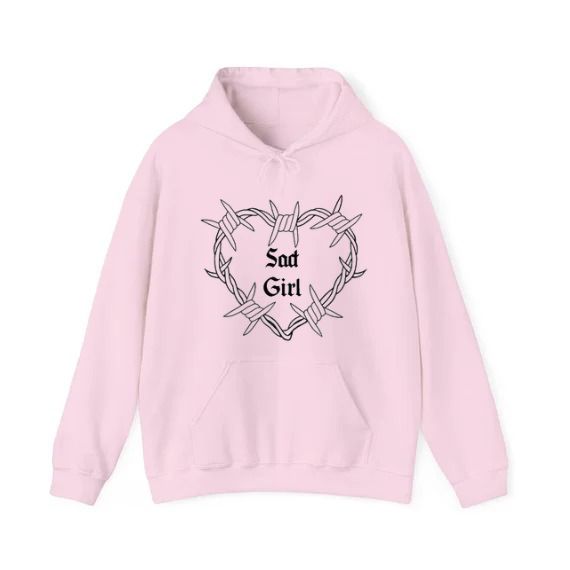 This look features a striking design of a heart made of barbed wire, with the words "Sad Girl" emblazoned in the centre. The look is crafted for comfort and style, making it a perfect addition to any casual wardrobe. Its dark and edgy graphic create a bold statement, ideal for expressing a unique aesthetic.