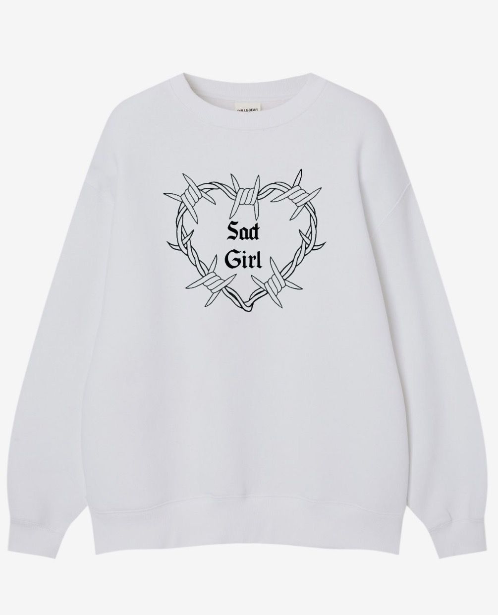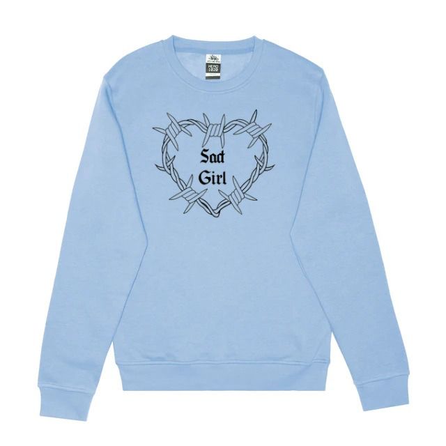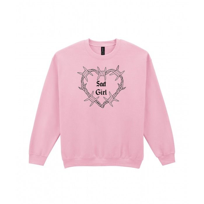This look features a striking design of a heart made of barbed wire, with the words "Sad Girl" emblazoned in the centre. The look is crafted for comfort and style, making it a perfect addition to any casual wardrobe. Its dark and edgy graphic create a bold statement, ideal for expressing a unique aesthetic.