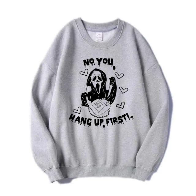 Show off your love for classic horror and playful banter with this unique graphic look featuring an iconic design inspired by the Scream film series. This isn't just cozy loungewear; it's a statement piece for movie nights, spooky season, or just adding a touch of horror chic to your everyday look. Whether you're settling in for a horror movie marathon or looking for the perfect gift for a Scream enthusiast, this look is a killer choice! Get yours before it screams off the shelves!