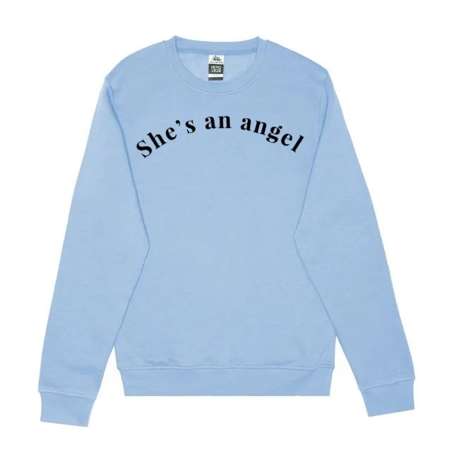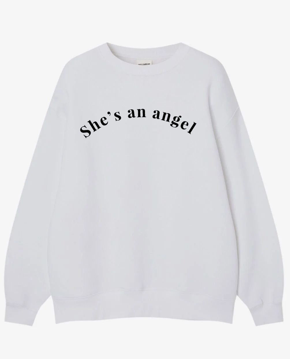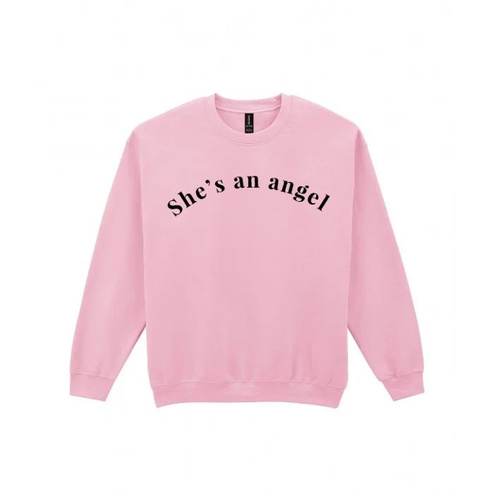 Step out in cozy comfort and a touch of attitude with this look featuring the bold, arching text "She's an angel" printed across the chest. Embrace your angelic—or maybe just super comfortable—side with this must-have look!