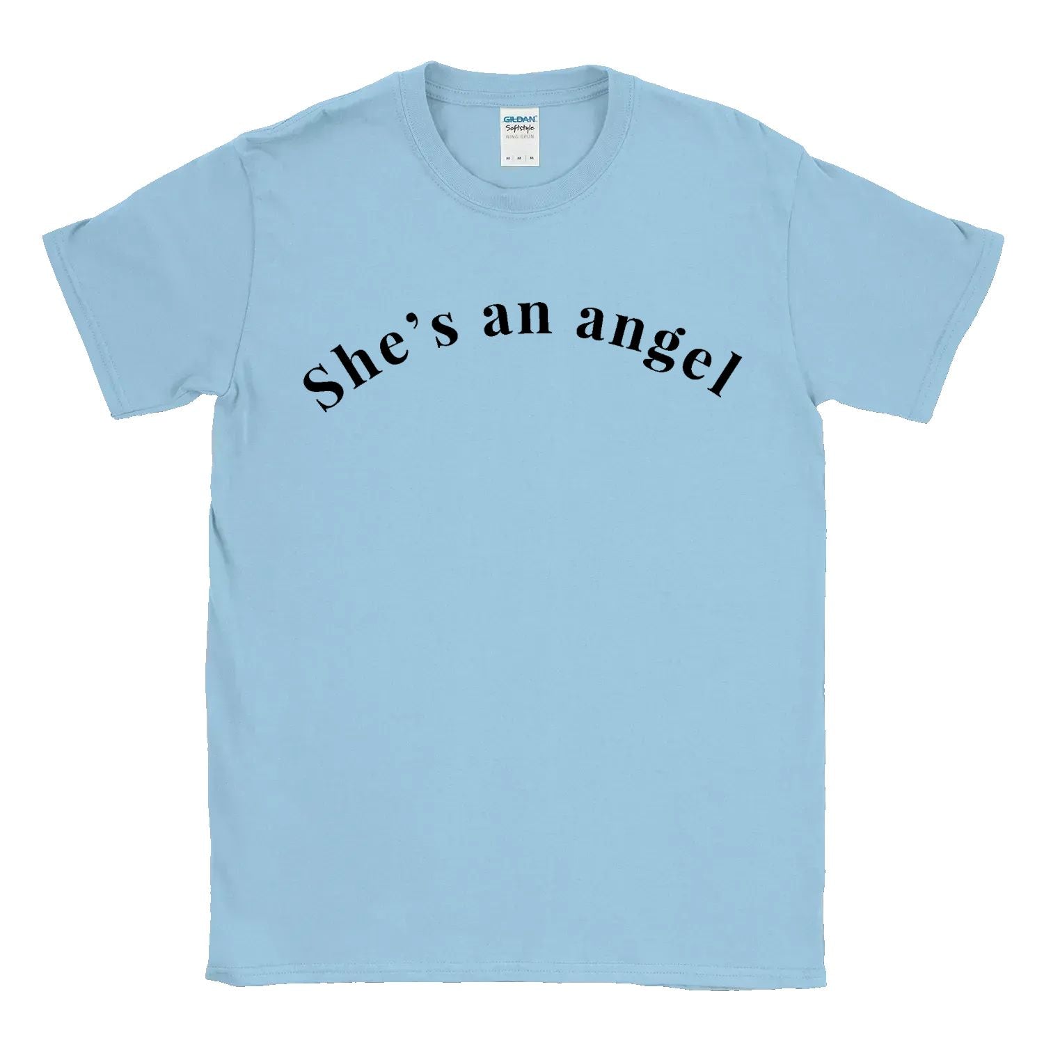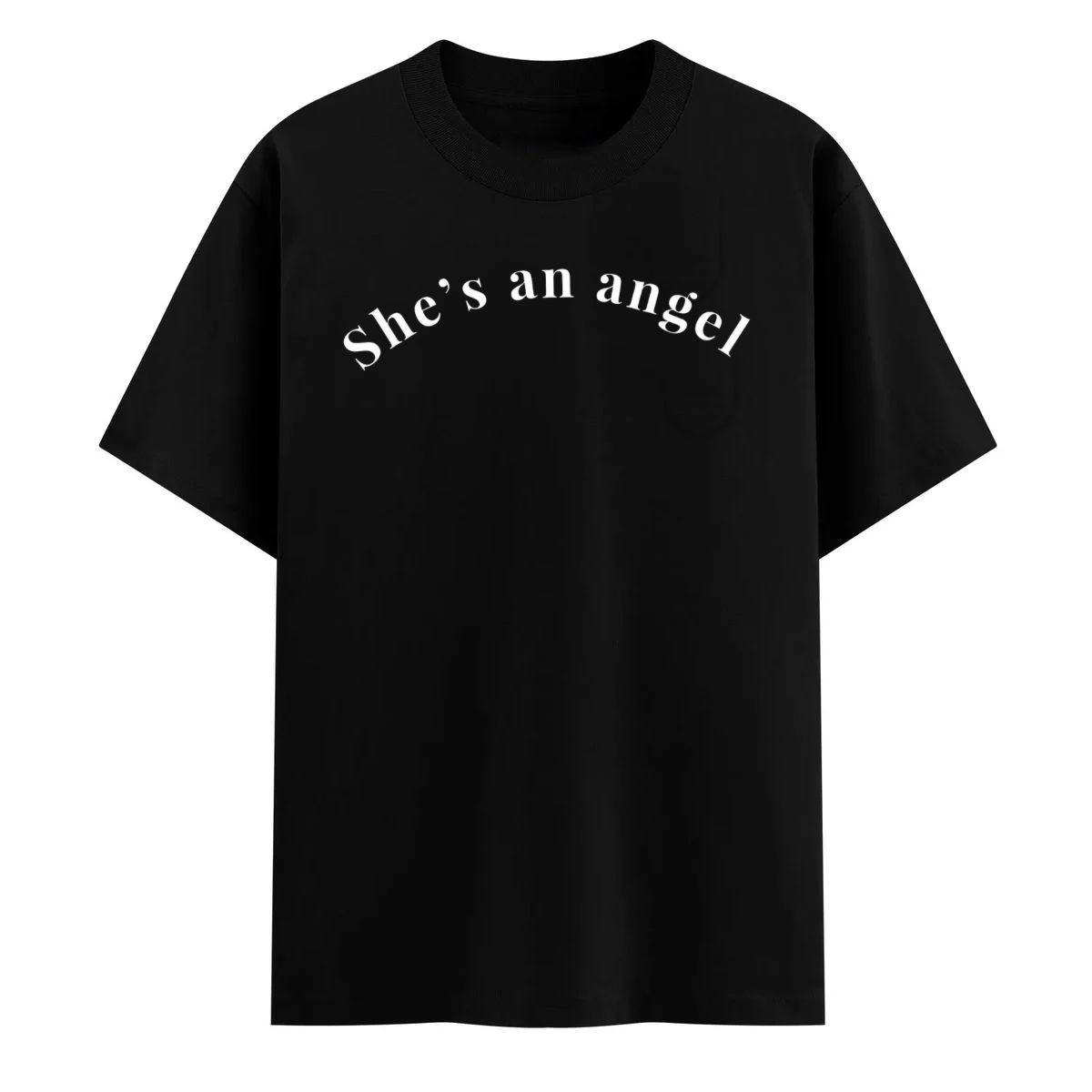 Step out in cozy comfort and a touch of attitude with this look featuring the bold, arching text "She's an angel" printed across the chest. Embrace your angelic—or maybe just super comfortable—side with this must-have look!