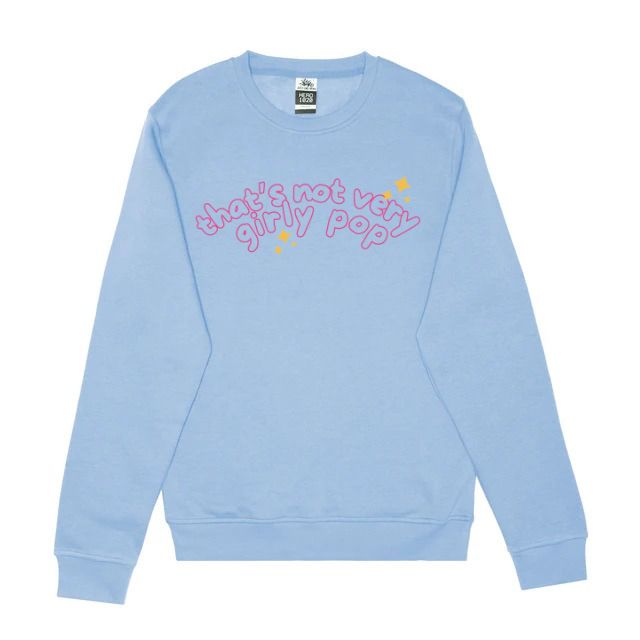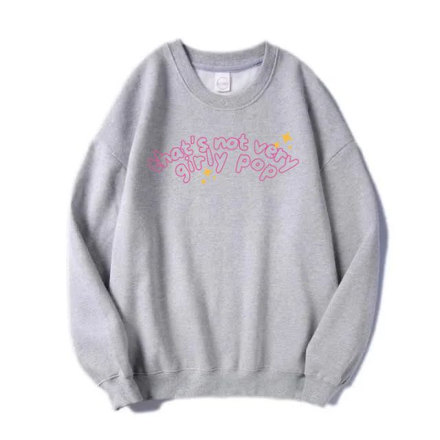Embrace comfort and sass with this statement piece! Featuring the iconic phrase "that's not very girly pop" in a vibrant, bubbly pink font with sparkling yellow accents, this hoodie is a must-have for anyone who loves internet culture, pop music, or just a good dose of playful irony.