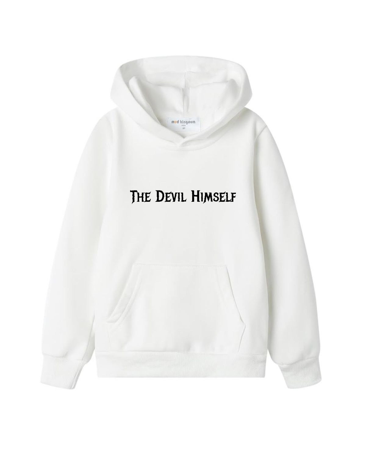 Unleash your inner rebel. This look is designed for those who appreciate comfort and a bold statement. Featuring the striking text "The Devil Himself" emblazoned across the chest in a classic, distressed-look font, this piece is all about attitude.