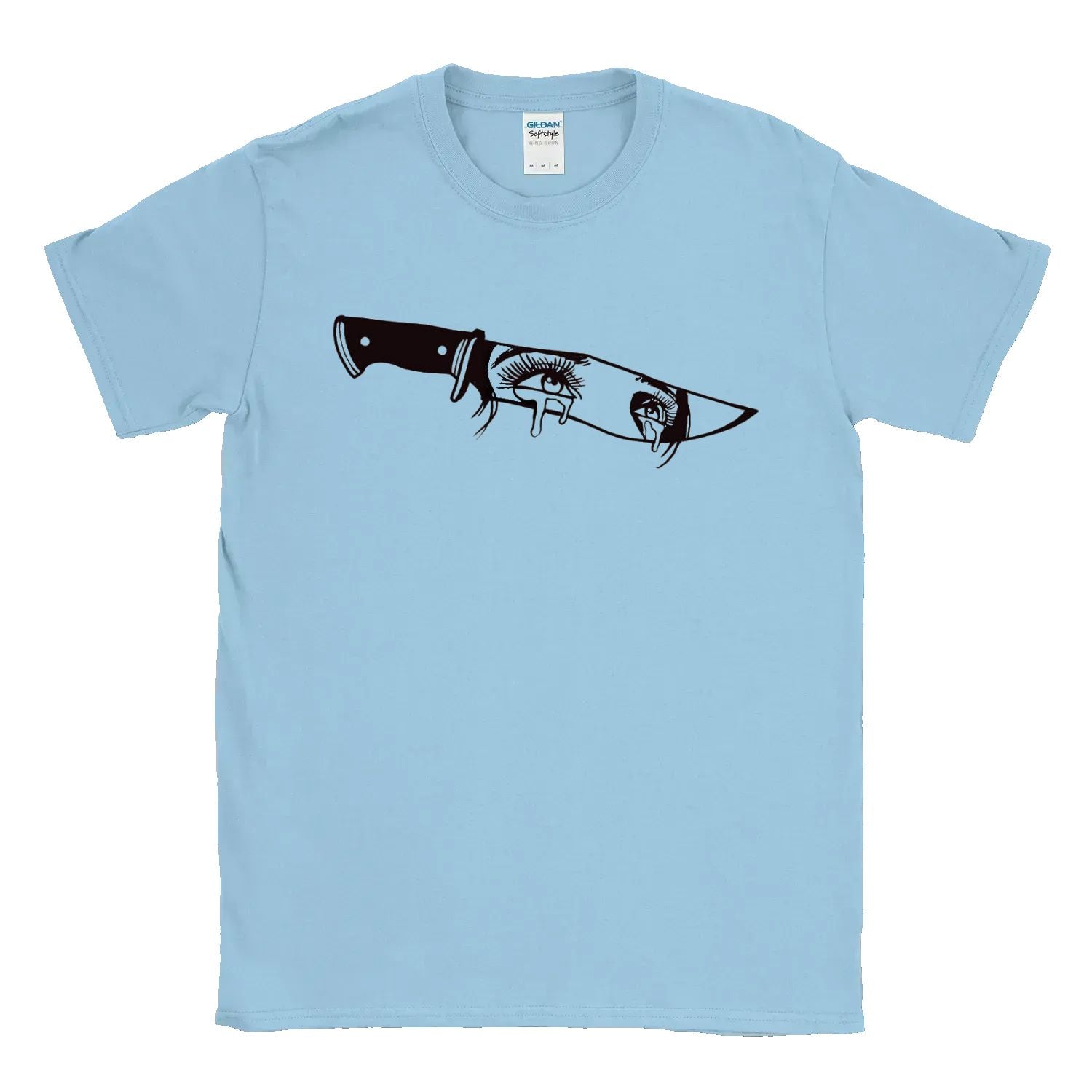 Featuring a striking print of a dagger with a unique, symbolic design on the blade—of eye with tears melting —this look is perfect for anyone with a love for darker aesthetic, occult-inspired art, or streetwear that stands out. The illustration is edgy, minimalist, and full of attitude.