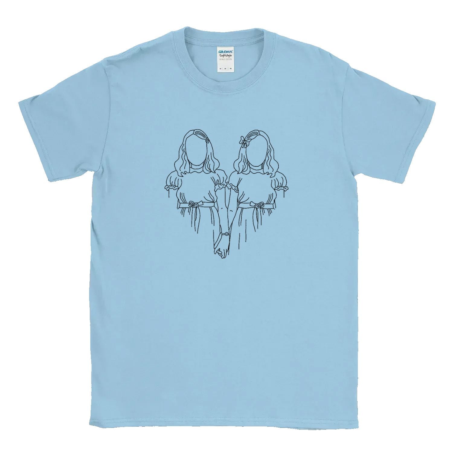 Two faceless girls holding hands in perfect symmetry—a minimalist homage to iconic horror. Sweet at first glance, haunting at second.