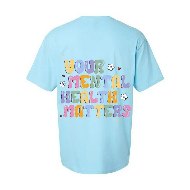 A bold and colorful affirmation reminding the world that mental health is just as important as physical health. Designed with groovy bubble letters and playful icons, it's a vibrant celebration of self-care and emotional wellness.